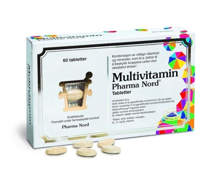 Ingredienser :L-askorbinsyre, kromberiket gjær (ChromoPrecise®), fyllmiddel (mikrokrystallinsk cellulose), magnesiumoksid, DL-alfa-tokoferylacetat, sinkglukonat, selenberiket gjær (*SelenoPrecise), antiklumpemidler (kryssbundet natriumkarboksymetylcellulose, silisiumdioksid, magnesiumsalter av fettsyrer), manganglukonat, nikotinamid, kalsium-D-pantotenat, overflatebehandlingsmidler (hydroksypropylmetylcellulose, maisprotein), kobberglukonat, D-alfa-tokoferylsyresuksinat, retinylacetat, pyridoksinhydroklorid, cyanokobalamin, riboflavin, tiaminhydroklorid, kolekalsiferol, pteroylmonoglutaminsyre, D-biotin.